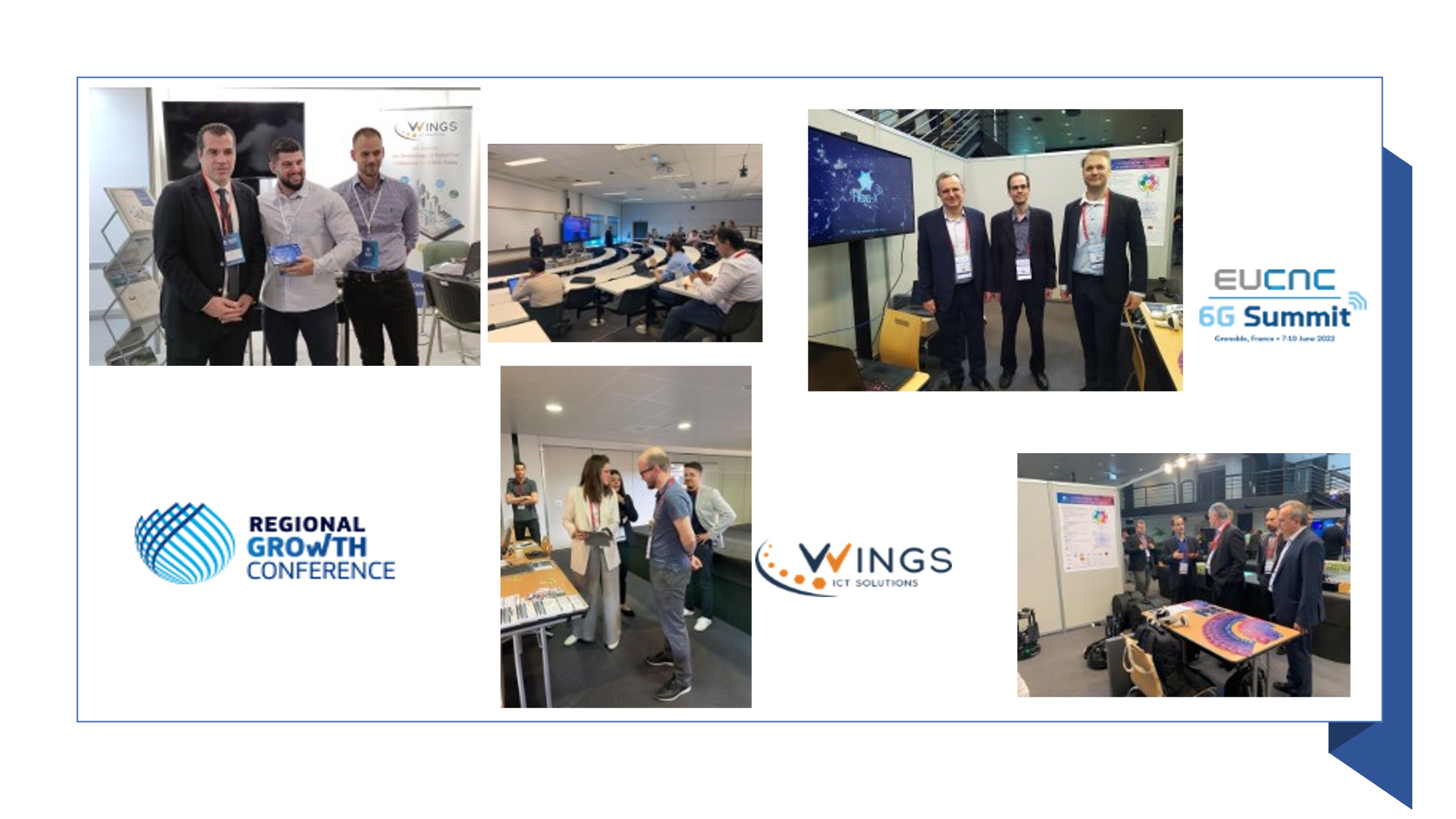 The last week was exciting and productive for WINGS ICT Solutions. The participation to two flagship events can be highlighted, among the many things that progressed. The participation to EuCNC & 6G Summit gave us the opportunity to demonstrate novel solutions that exploit 5G and will further benefit from features that will be spurred by 6G, e.g., cooperative robots, massive twinning, the tight connection of the physical and digital worlds. Demonstrations of industrial applications (@Hexa-X), transportation / logistics / mobility (@Dedicat 6G, @5G-Tours, @5G-Mobix, 5G-Carmen), aquaculture (5G-Heart), infrastructure management (Daemon), localization (Locus, Incelligent) raised a lot of attention. In parallel, WINGS ICT Solutions participated, through a booth and demonstrations, to the Regional Growth Conference 2022, “Paving the New Way”. Lively and efficient discussions were held on our solutions for Air Quality (AIRWINGS), Utilities (ARTEMIS), Transportation Infrastructures (WINGSPARK), Food Safety / Agriculture (AGNES), Industry 4.0 / Industrial IoT / logistics (WINGSChariot), Aquaculture (AQUAWINGS), and Health and Wellness (STARLIT). Stay tuned for further news from us, in the next weeks of the summer. #IoT, #ai, #5G, #6G, #digitaltransformation, #sustainability, #growth