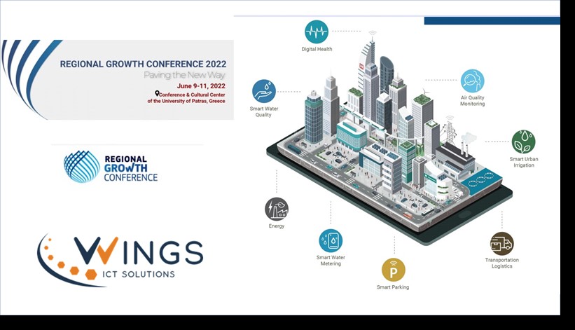 WINGS – Digital Solutions for Sustainable Growth. Public sector entities and private sector companies are rapidly implementing digital transformation strategies to improve their engagement with citizens, deliver better public services and optimize cost structures. Digital technologies and best practices offer enormous opportunities to improve efficiency, replace ageing legacy IT infrastructures, and even to take a new look at how to best serve the needs of citizens in an increasingly online world. Our team will showcase WINGS solutions from our booth in the Regional Growth Conference 2022, “Paving the New Way” Patras | June 9-11, 2022, Cultural Center, University of Patras. WINGS’s digital solutions for Air Quality (AIRWINGS), Utilities (ARTEMIS), Transportation Infrastructures (WINGSPARK), Food Safety / Agriculture (AGNES), Industry 4.0 / Industrial IoT / logistics (WINGSChariot), Aquaculture (AQUAWINGS) and Health and Wellness (STARLIT), will be in the center of attention during the conference. Stay tuned for more to come.
